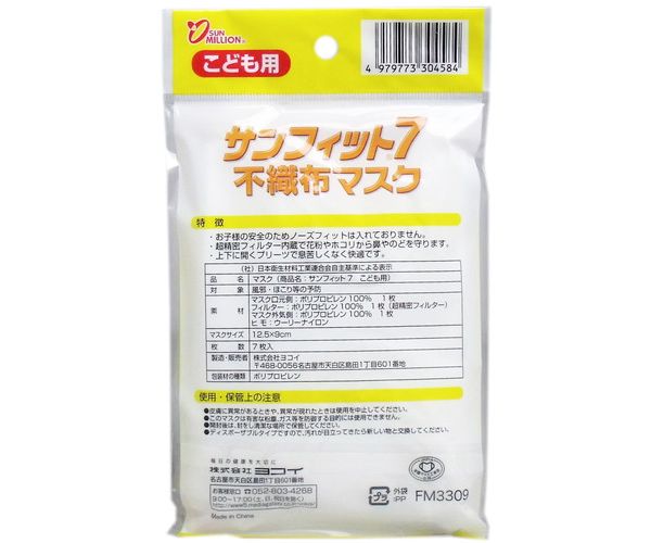 個装サイズ:115X185X10mm個装重量:約20g内容量:7枚製造国:中国【対象】風邪・ほこり等【素材】口元側・ポリプロピレン100%:1枚フィルター・ポリプロピレン100%:1枚(超精密フィルター)マスク外気側・ポリプロピレン100%:1枚ヒモ・ウーリーナイロン【マスクサイズ】約12.5X9cm【注意】・皮フに異常がある時や、異常が現れた時は使用を中止してください。