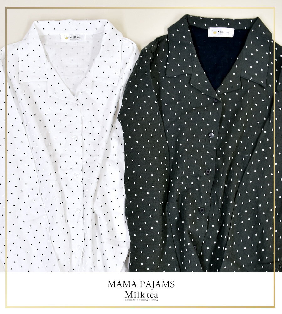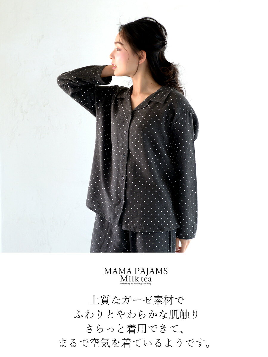 【ポイント5倍】 <授乳パジャマ>ドット柄・上質ふんわりガーゼコットンママパジャマ(上下セット)(ボタンタイプの授乳口)ルームウェア 前開き セット ナイティ パジャマ 長袖 前開き 綿 ガーゼ ドット 部屋着 入院準備 出産祝い産後 春 夏 秋 冬 9分丈
