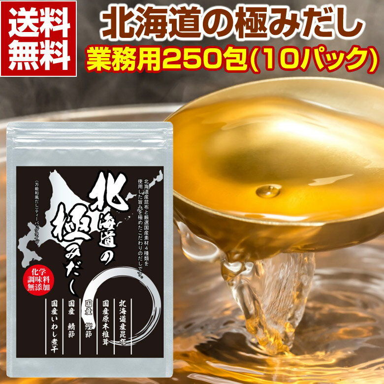 【送料無料】国産 無添加.北海道の極みだし250包(25包×10袋).万能和風だし 化学調味料無添加 厳選国産素材使用 業務用 常温食品 常温保存 長期保存 保存食 備蓄 だしパック だしの素 出汁 かつおだし 昆布 だしつゆ 鰹節 かつおぶし 粉末 だしバッグ【Z10】〈B1〉