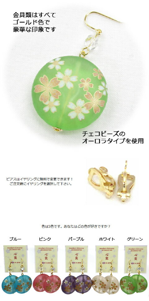 丸みのある半透明のアクリル玉に桜柄をあしらったまるでドロップみたいなかわいいピアスです。