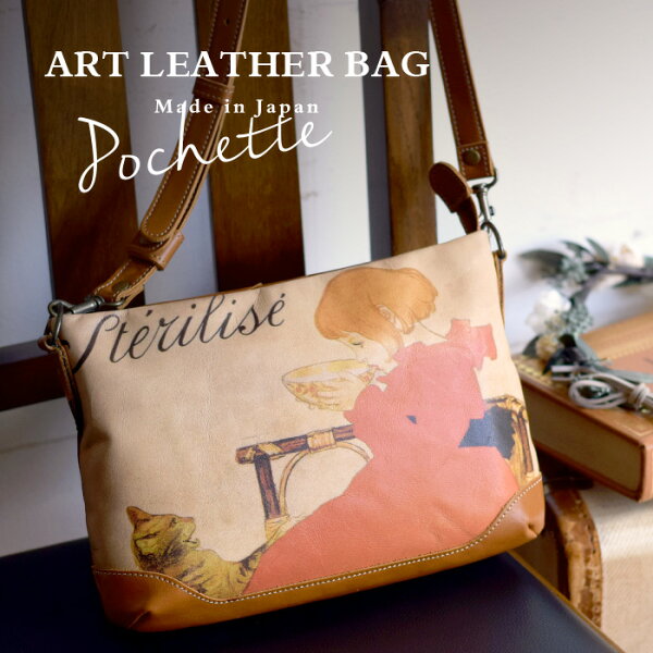 本革 牛革 革 レザー 猫 黒猫 ポスター テオフィル・アレクサンドル・スタンラン 【心を込めた贈り物に】 男女問わず、幅広い年齢層から支持されるアートレザーバッグポシェットは、ご自分用はもちろんのこと贈り物としてもおすすめ。