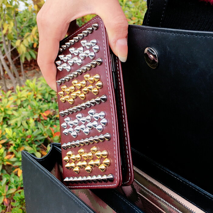 内側のケースに合わせてカメラ穴・フラッシュ穴等を一点一点、手作りであけております! 【 スタッズ 鋲 スパイクスタッズ レザー 大人女子 華やか クール 個性的 派手 おしゃれ お洒落 トゲトゲ レディース メンズ レッド ブラック ネイビー オレンジ ピンク ブラウン ケース カバー 手帳型 手帳 手帳型ケース 手帳型カバー スマホケース スマホカバー 】 ・ゆうパケットを選択の際、送料無料! ・宅配便は別途送料がかかります。